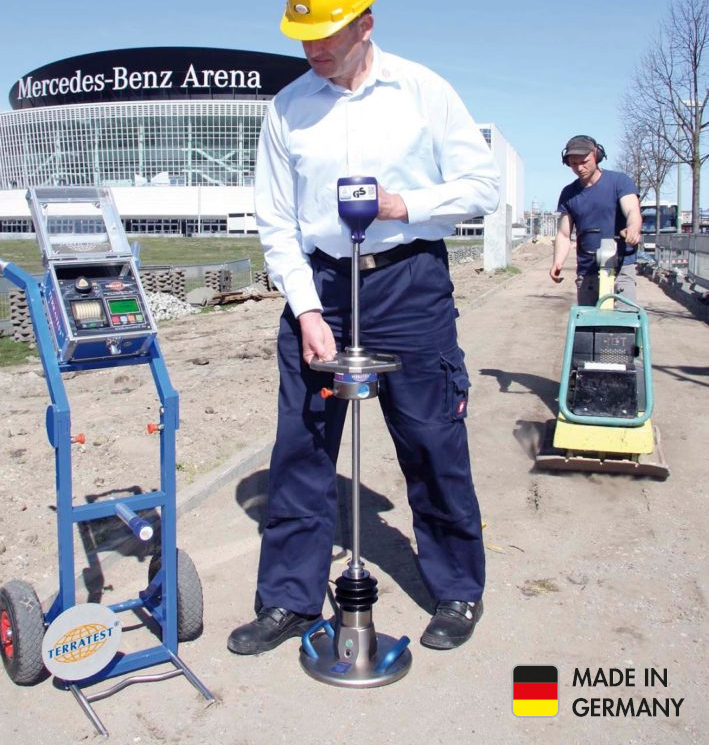 Light Weight Deflectometer for dynamic plate load test is the perfect tool to measure the bearing capacity of unbound subgrades and subsoils, 2,990 €. The test method applied is worldwide recognized and complies with ASTM E2835-11. It is a perfect tool to determine the compaction quality of existing ground soil before starting, subbase layers before overlay, highly compacted layers, granular layers and backfill material in earthworks and road constructions. Using TERRATEST® LWD is the easy and fast way to check quality of soil compaction in construction sites. One single person needs only two minutes to perform the test, no load vehicle as counterweight is needed.